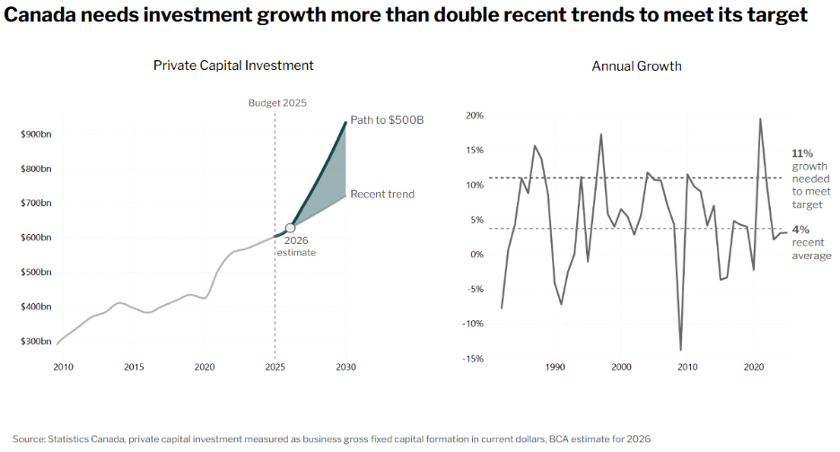 Last year, the Government of Canada said it expected the budget to enable $1 trillion in investment over the next five years, half of that coming from the private sector. Driving this is a mix of policy changes, incentives, and spending tied to “capital-enabled economic growth.” As the Prime Minister recently told foreign business leaders, Canada is now the place to invest: it’s slashed red tape, cut taxes, and is committed to moving forward major projects quickly.