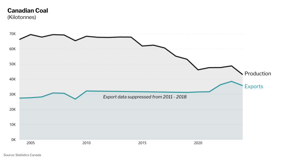 But while domestic coal use has dropped to almost nothing, global demand has modestly grown over the same period. And when it comes to production and export, Canada remains a major player, ranking as the sixth-largest coal exporter worldwide.