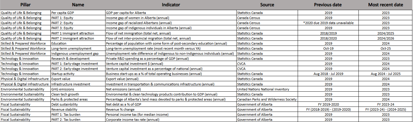 The 2025 Prosperity Scorecard is more than a single-year snapshot. It reviews Alberta’s progress from 2019 to 2025, an assessment of how the province is performing — halfway through the decade — across 22 measures of prosperity, from economic strength and innovation to quality of life and belonging. The Scorecard highlights where Alberta is making gains, where it is falling behind, and where focused action will be essential to ensure long-term prosperity for all Albertans.